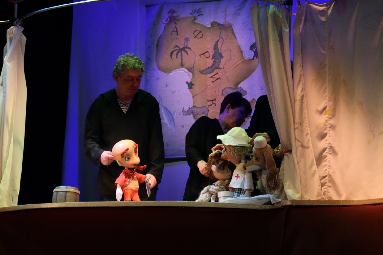 В этом веселом и динамичном спектакле есть все, что так любят дети: погони, приключения, плавание к далекой земле, кораблекрушение и т.п.