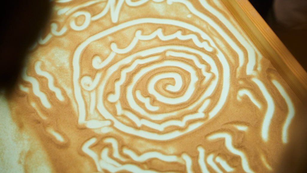 Мастер песочной анимации Ксения Ионина прямо на сцене под музыку рисует сказку. Следуя за голосом чтеца, лёгкими движениями рук меняет картинку за картинкой. Мы делаем взмах волшебной палочкой... и начинаем рисовать, рассказывать и слушать песочную историю!