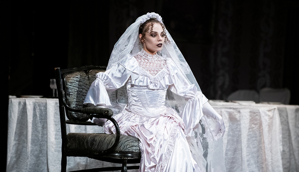 Здесь нет ни главных ни второстепенных героев – у каждого персонажа комедии яркий, неповторимый характер и колоритный образ. Весь спектакль очень динамичен: безудержное веселье, танцы, острый юмор, колкие диалоги – всё это приковывает внимание зрителя от начала и до конца спектакля. «Свадьба с генералом» – спектакль о парадоксальном и трагикомичном мире, где любовь, радость, красота обратились в скверную пародию на самих себя.