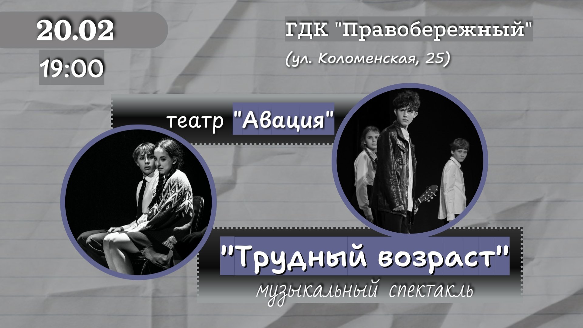 Ассоциация Клоунов "Авация" совместно с Молодёжным театром "Авация" покажет для вас музыкальный спектакль "Трудный возраст".