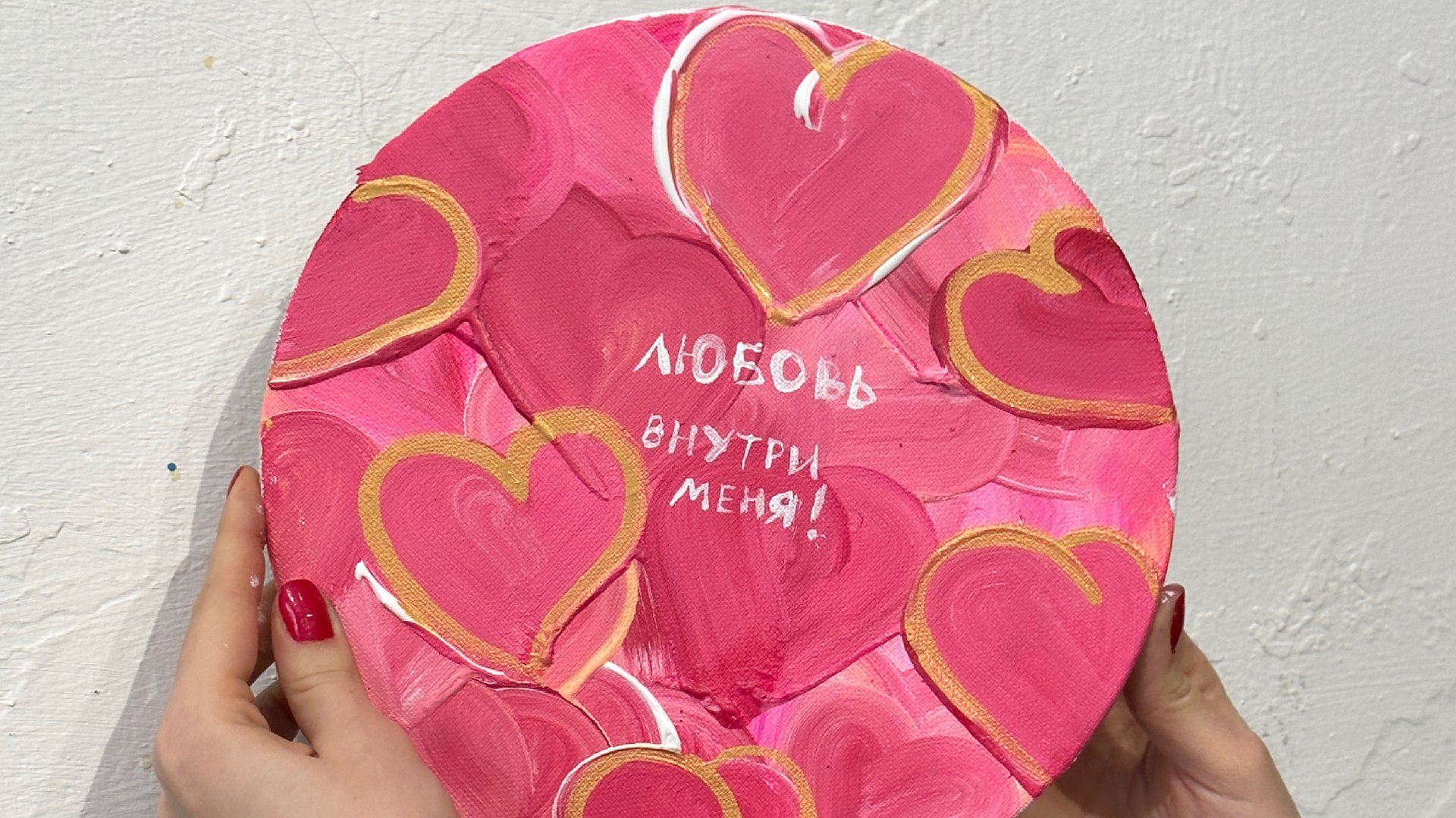 — Воплотим образы любви с милыми фразами на круглом холсте диаметром 25 см — и всё это под веселую музыку и свет свечей!