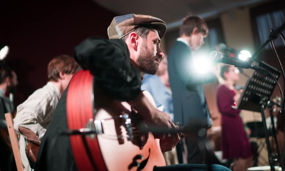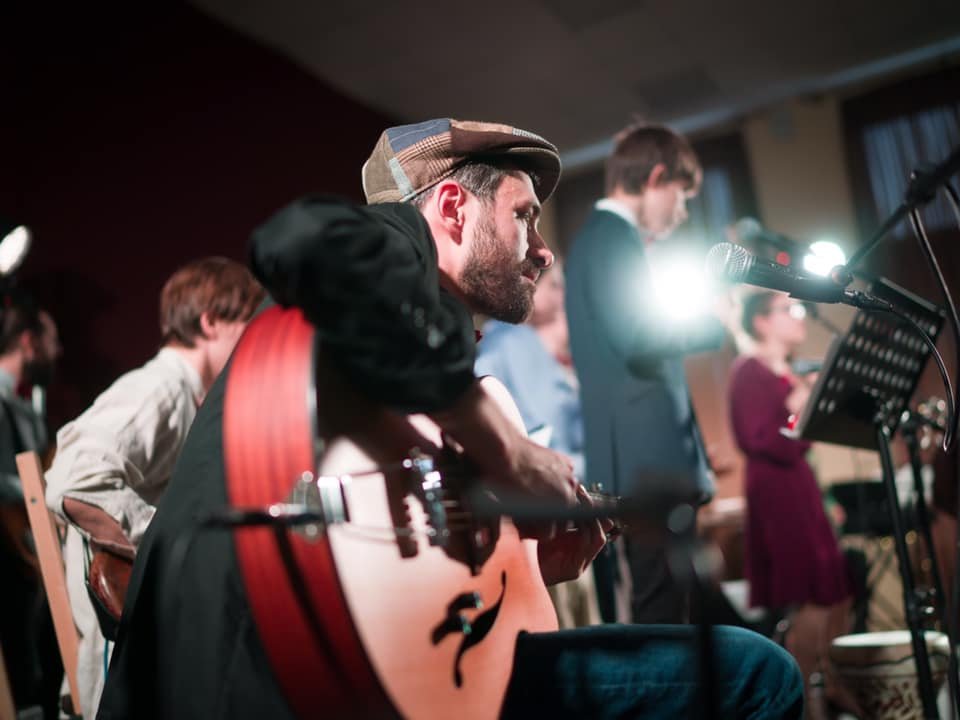 На сцену выйдут: Ольга Бахшиева (тромбон), Артём Просветов (губная гармоника), Евдоким Крюков (кларнет, руководитель духовой секции), Евгений Крапивкин (бас), Яков Летучий (укулеле), Елизавета Бурова (вудблоки и жестовый вокал), Иван Сукманский (тамбурин), Вадим Гинзбург (шейкеры), Пётр Талалай (ударная установка), Александр Водинский (гитара, руководитель ансамбля) и Анастасия Лютова (вокал).