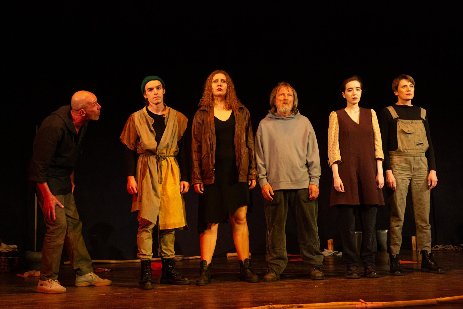 Спектакль «Торф» по мотивам повести Михаила Пришвина — переработанной и переосмысленной режиссёром, превращённый в актуальное художественное высказывание о выживании, памяти и связи человека с природой, где границы между человеком и зверем, прошлым и будущим, сказкой и кошмаром стираются.