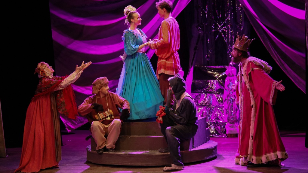 Вот вы сказки любите? И я тоже! Только у меня от этой сказки чуть оказия не произошла — так смеялся, чуть было не лопнул! А все почему? Уж больно забавные герои Кот Васька да Пес Журка. Их хозяин Мартынка от смерти спас, и потому служить ему стали они верой и правдой. С кем только ни воевали — и с мышами, и с раками, и со злой ведьмой-оборотнем. Побывали и под землей, и по белу свету хаживали. С царями и королевишнами знались, за одним столом пиры пировали. И как им эти чудеса удавались? Вот об этом-то вы и узнаете, когда придете, да посмотрите. Всех зовем и больших, и малых, молодых, и старых — всем места хватит, всем радости добавит!