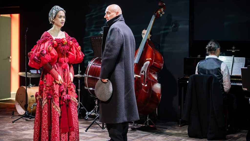 Объектом рефлексии для режиссера становится время, конец 1930-х. Так же, как в «Чайке», предыдущей работе в Александринском театре, в новом спектакле нарратив — не главное. Язык сценического повествования у Павловой ассоциативен. Здесь реплики героев уравнены со всем аудиальным многообразием, складывающимся из звуков шагов, передвигаемых стульев, тиканья часов, обрывков мелодий, песен, кусочков оперных арий, барабанной дроби и так далее.