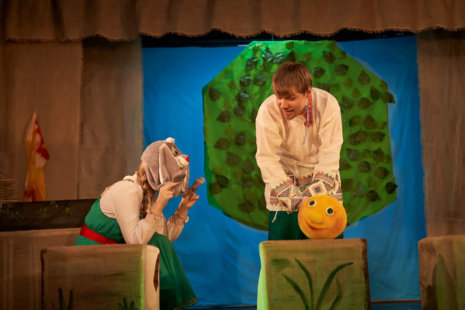 Спектакль «Мышка-норушка, Колобок и теремок» — увлекательное путешествие в неповторимый мир русского фольклора. Спектакль для самых маленьких зрителей. Жили-были Дед и Баба… Коллаж из любимых с детства русских народных сказок. Тут и веселый Колобок, и Курочка-Ряба, и репка. А Мышка-норушка с друзьями находит теремок. В спектакле много песен и народной музыки… и даже ансамбль ложкарей!