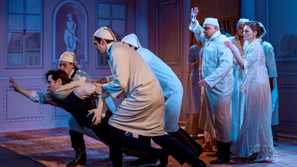 Классическая комедия приобрела оттенки увлекательного водевиля с маскарадными переодеваниями. Обитатели «московского гнезда» живут своей жизнью, поэтому Чацкий, вернувшийся из Европы, плохо вписывается в привычный, устраивающий всех уклад жизни и круговорот взаимоотношений.