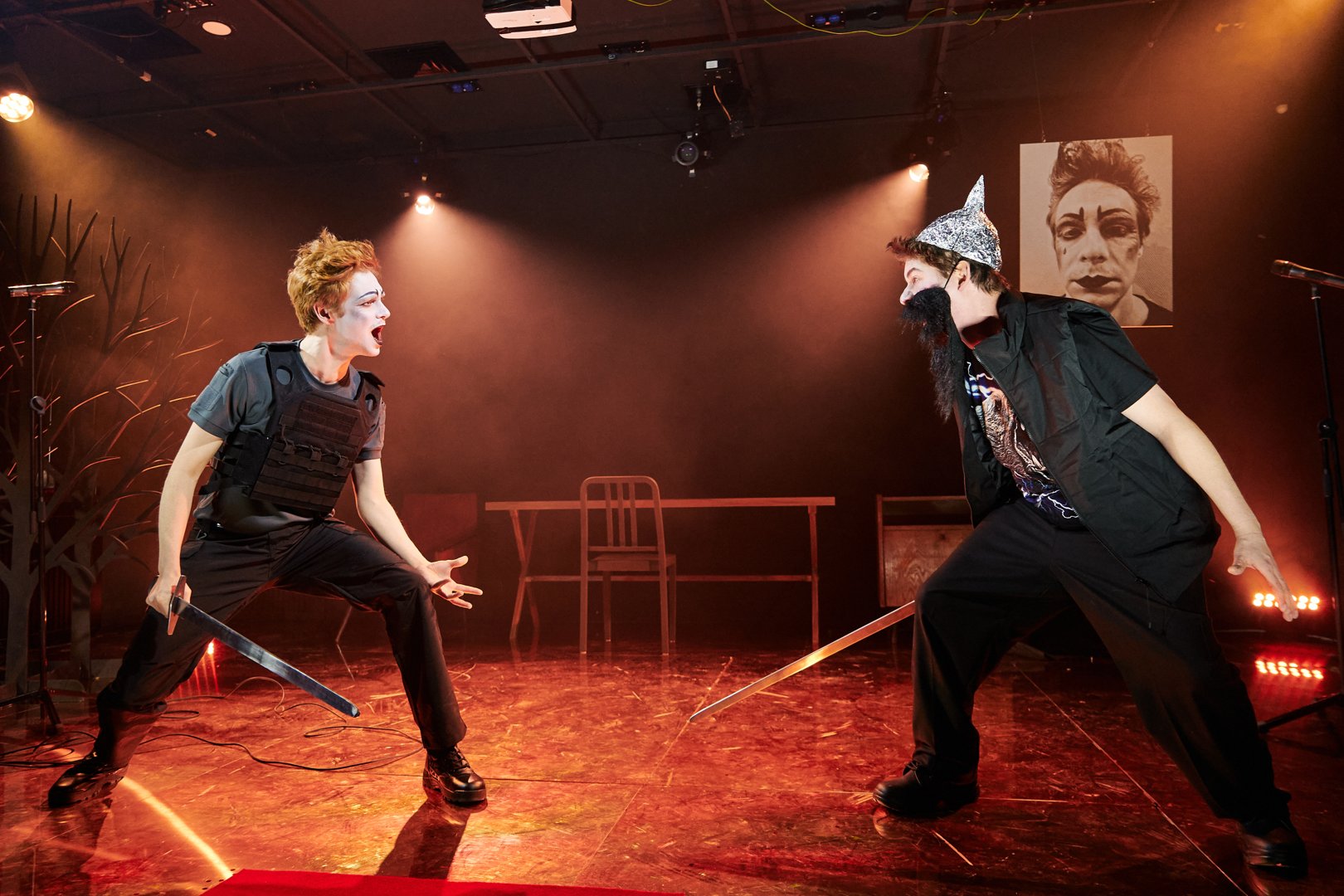 Молодой режиссёр Филипп Шкаев переосмысляет место героических и любовных мотивов в современном мире и предлагает озорной, ироничный и отчасти разоблачительный взгляд на подвиги Тристана. В спектакле «Практики» снижен многовековой пафос рыцарского романа, а жанр унаследовал эстетику фильмов Гая Ричи и клипов из соцсетей, трансформировавшись в причудливую смесь комикса и пародии.