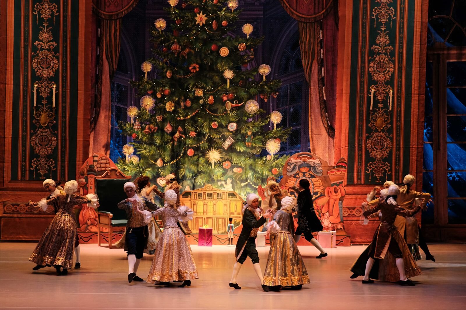 Вечер. Канун Рождества. В дом Штальбаума на праздник спешат гости с детьми. Празднично украшенная гостиная в доме Штальбаума, ёлка горит разноцветными огнями. Гости кружатся в танце. Дроссельмейер, друг Штальбаумов – изобретатель и выдумщик, начинает творить чудеса – оживлять игрушки. Паяц, Кукла, Негр двигаются как живые к общей радости детей. За танцами гости не заметили, как прошло время. Пора спать. Родители уводят своих расшалившихся детей. И только Маша остается в гостиной, прося Дроссельмейера оживить ещё одну куклу — это Щелкунчик. Неожиданно в комнату заходит Франц с друзьями и пугает её. Маша прячет Щелкунчика за спиной. Комната опустела. Маша прощается с Щелкунчиком, огни на ёлке гаснут. Маша тихо прокрадывается в тёмную гостиную, чтобы ещё раз попрощаться с Щелкунчиком. Она усаживается под ёлкой вместе с любимой игрушкой, засыпает и видит сон.