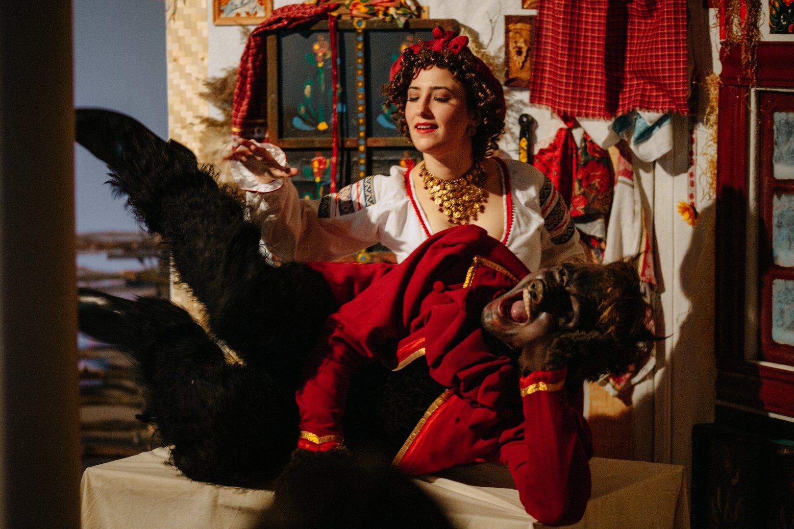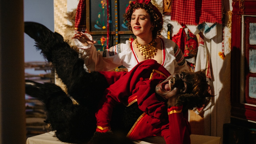 Комедия с элементами фантасмагории «Вечера на хуторе близ Диканьки» — не оставит равнодушным ни одного из зрителей от мала до велика. Из погружения в историческую эпоху, мы резко можем отправиться как в наши дни, так и в эпоху «немого» кинематографа. Вас вряд ли оставят тихим созерцателем происходящего: захватят в свой хоровод колядующие парубки и дивчины, ароматное сало может внезапно перепорхнуть со сцены в зрительный зал, пан Чуб предложит поднять чарку горилки за чье-нибудь здоровичко, а неприступная Оксана ни раз заставит Вакулу приревновать себя к какому-нибудь видному хлопцу.