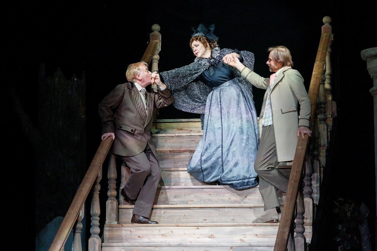 Встреча Чехова и Островского в одном спектакле и в одном сюжете? «Это невозможно!» — скажете вы. Драматург Москвы купеческой, денежных интриг, купли-продажи, когда на продажу может быть выставлено все что угодно, лжи и верности, страстей и негромких размышлений... И до сарказма ироничный, тонкий знаток, виртуозный инженер человеческих душ... О каждом можно говорить многое, но в чем их сближение? В сути творчества, в единстве мест и времён, в героях и персонажах, да просто в том, что встретились две одинокие души...