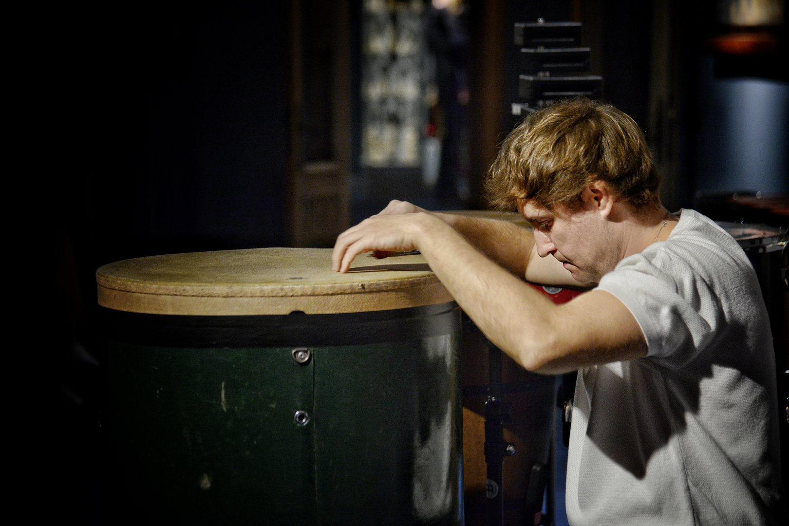 Первый барабан и первый человек рядом. Играя, он видит свою тень. В какой-то момент ему кажется, что то, что он говорит, то, что он поёт, те звуки, которые он произносит, является боем — боем с тенью.