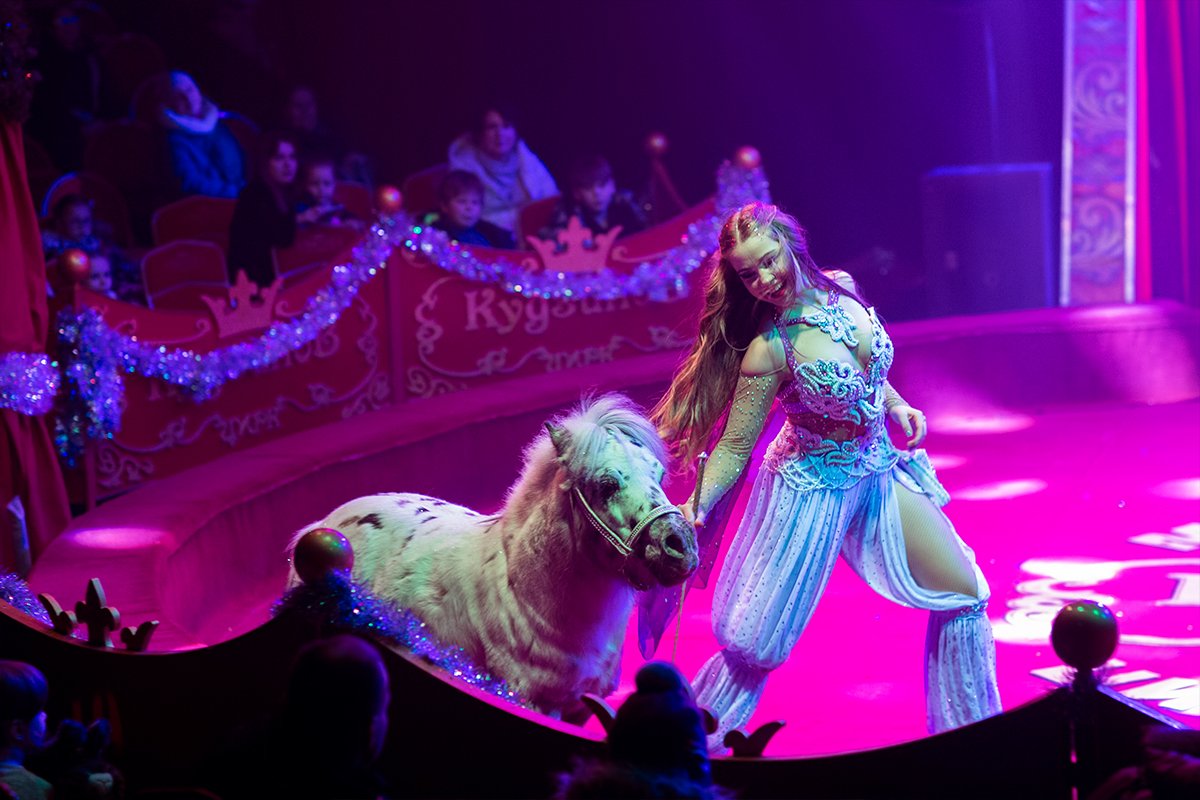 Танцы, свет и шоу-балет. Украшает представление. Шоу-балет цирка кудзинов. Под руководством шпрехшталмейстеров Оксаны Кудзиновой и Андрея Вяжевича — стильные массовые постановки, танцы и парады под куполом цирка.