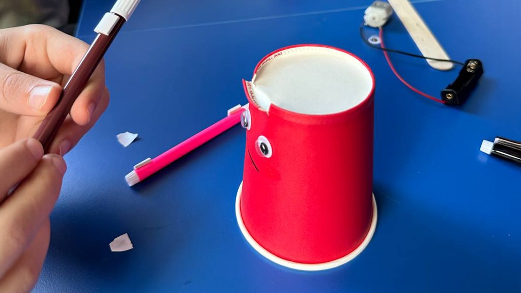 Участники смогут собрать своего робота — рисовальщика из бумажного стаканчика, фломастеров и небольшого электродвигателя.