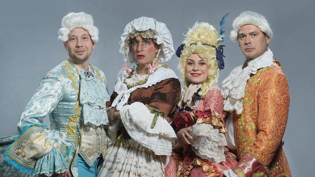 «Дублёры» — невероятно смешная, роскошно костюмированная комедия (кринолины, камзолы, парики эпохи рококо) о тайнах, интригах и анекдотичных ситуациях театрального закулисья. Интрига кроется и в великолепном исполнении Оскара Кучеры, который в этом спектакле играет 2 роли...