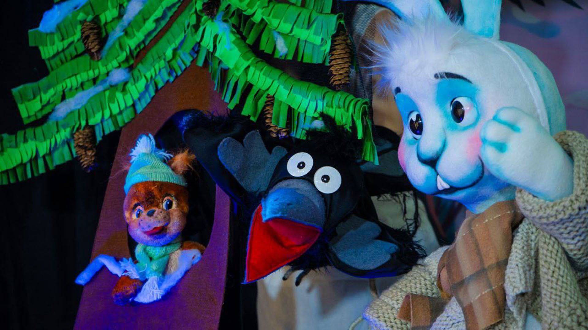 Спектакль о добродушном Зайце, который отправляется в лес за пропитанием для семьи, но по дороге, встречая друзей, раздает им всё, что собрал. Да ещё и сталкивается с опасным Волком и насмехающейся Вороной.