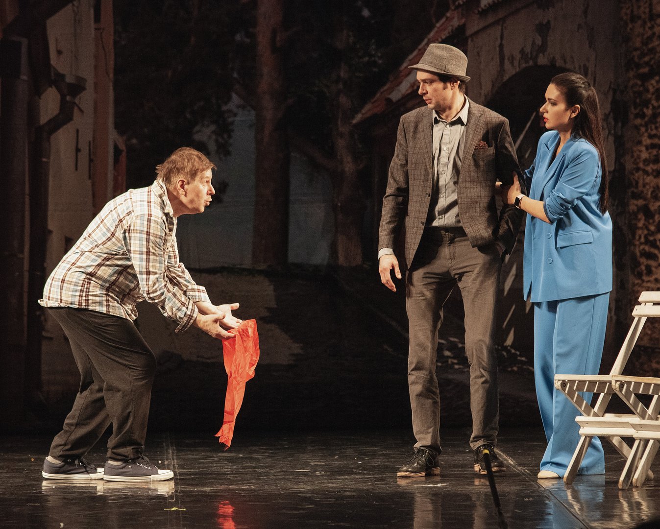 Спектакль наполнен множеством сюжетных поворотов, заставляющих находиться зрителя все время в состоянии волнительного ожидания до самого финала.