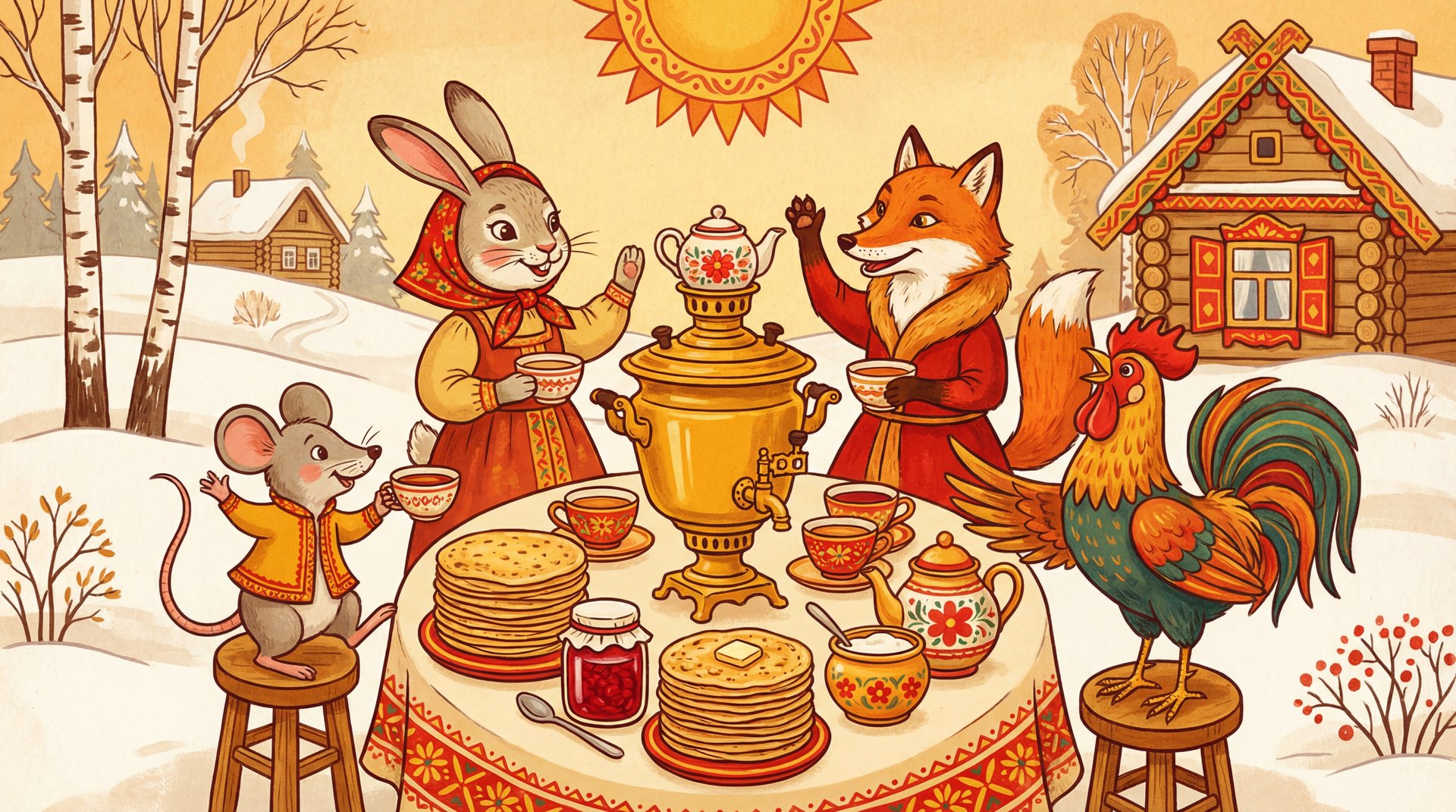 «Вкусная история на Масленицу» — это спектакль-сказка с красивым реквизитом и куклами, игровая программа и душевное застолье с чаем из самовара и блинами с пылу-жару!