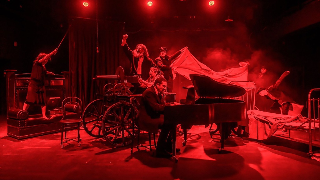 Режиссёр в спектакле отказывается от несколько мелодраматического финала романа, переписывая его.
