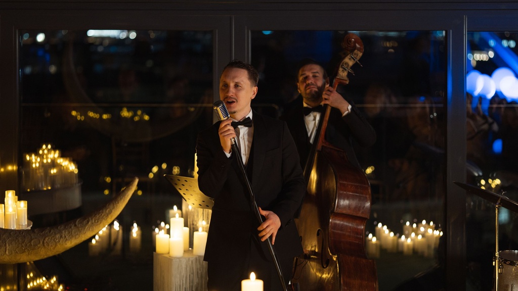 В окружении сотен мерцающих свечей для вас выступит неподражаемый джаз-бэнд Jazz Hooligans. Легендарные хиты, от которых замирает сердце — L. O. V. E., Fly Me To The Moon, Cheek To Cheek — наполнят воздух магией и флёром романтики.