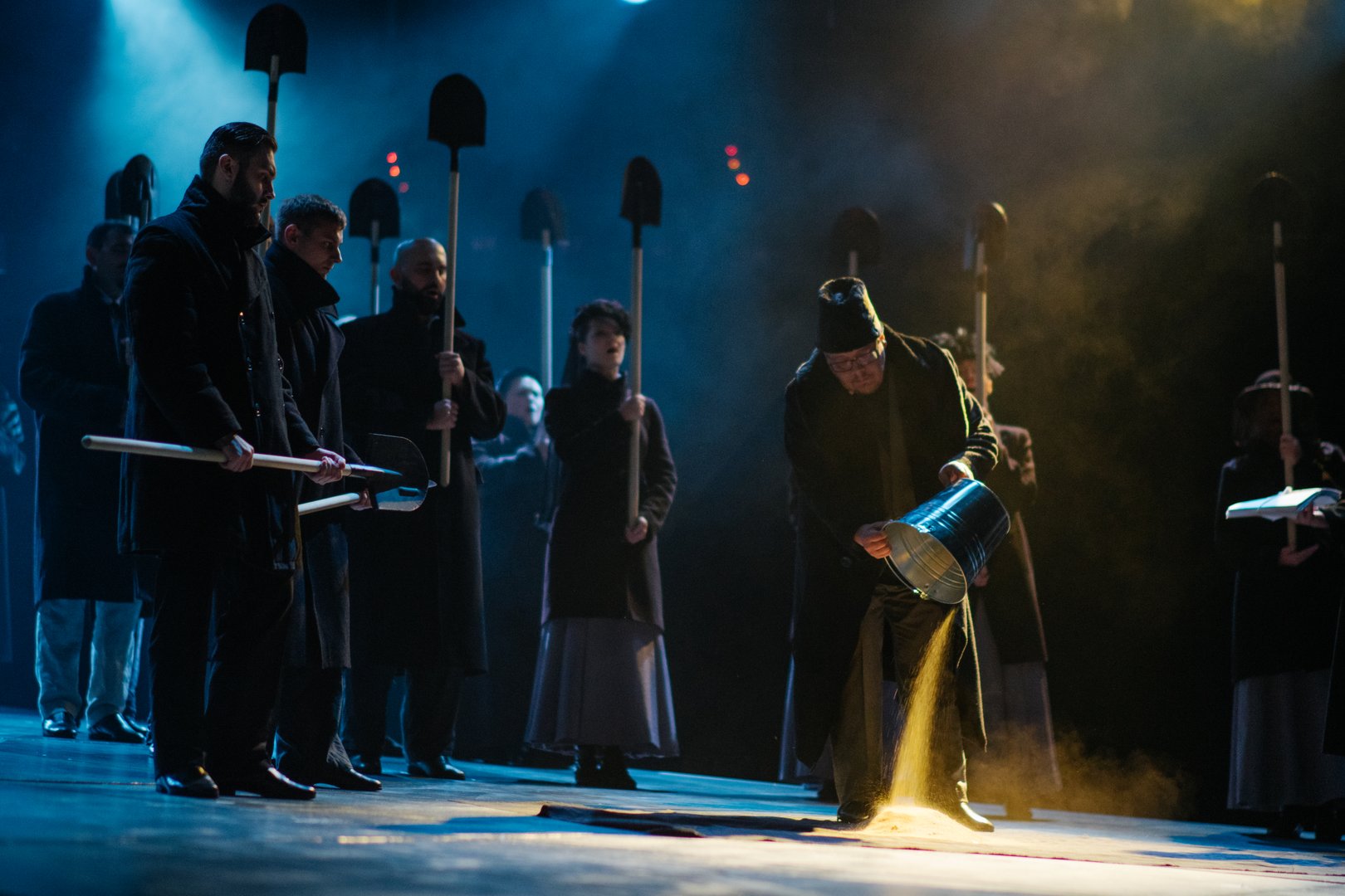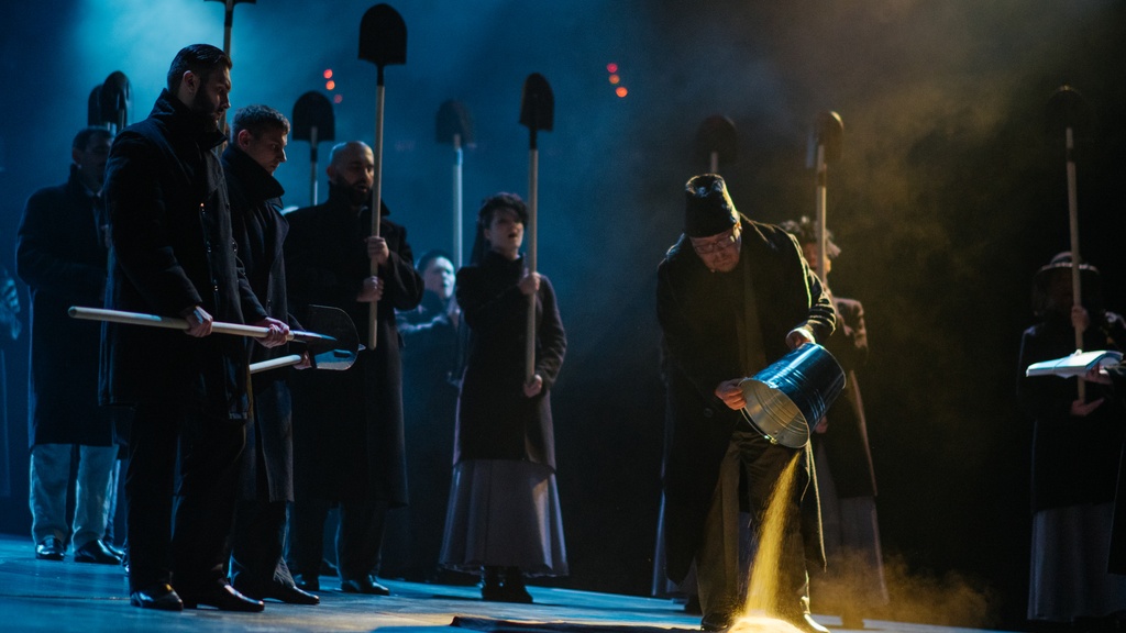 «Доктор Живаго» — это спектакль по одноименному роману про неидеального героя, который вопреки, а не благодаря эпохальным, трагическим событиям с 1917 по 1922 год сумел стать лучшей версией себя. Поэзия здесь выступает важнейшим действующим лицом, философия условием существования, а место действия — погост.