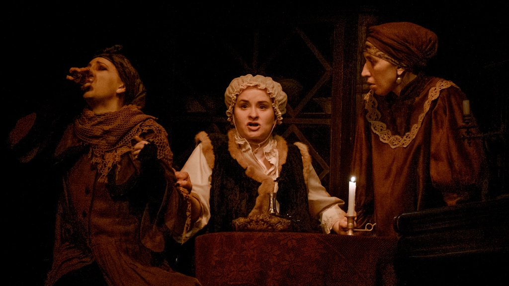 Спектакль страшно таинственный и одновременно гомерически смешной! Вместо традиционной бытовой комедии на сцене возникает фантасмагория с чудесами, невероятной логикой и неожиданными событиями. Кочкарёв — чёрт, который крутит на сцене «бесовские штучки». Призрачные видения пугают и завораживают: то со скрипом открывается дверь шкафа, куда бесшумно проваливается слуга Степан, то в трюмо появляется мертвенно-синее лицо, быть может, самого дьявола...