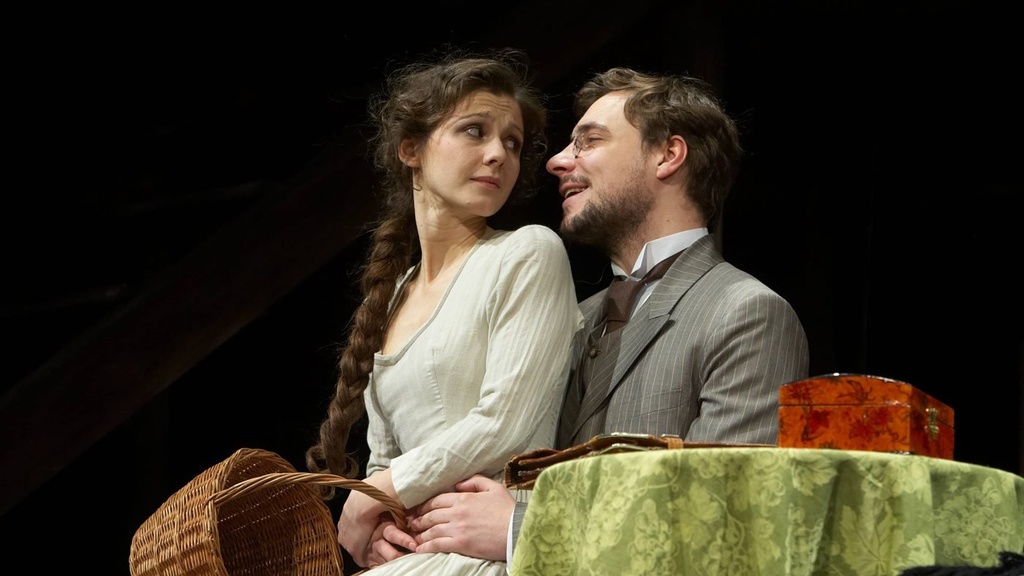 «Бесприданница» Петра Фоменко — не лёгкая, кружевная акварель, но строгий офорт, прочерченный сильными, резкими, точными штрихами. Приглушённые краски и предельная функциональность декораций. Острые изломы стиля модерн. Никакого мелодраматизма, разухабистого купеческого быта, томных песен и «мохнатых шмелей».