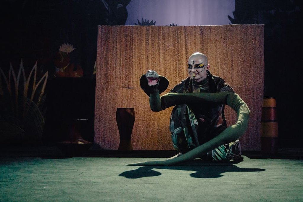 Кто не знает историю храброго мангуста Рикки-Тикки-Тави, спасшего семью англичан от неминуемой гибели от укуса змей? Действие сказки разворачивается в джунглях, а героями истории становятся экзотические животные — мускусная крыса Чучундра, птичка-портной Дарзи, индийские кобры Наг и Нагайна и др. Где, как не в театре кукол, возможно в полной мере воплотить всю эту флору и фауну? Художник Марина Завьялова создала на сцене настоящие тропические джунгли в стиле Анри Руссо. Герои спектакля, которых играют молодые актеры БТК, представлены на сцене с помощью кукол, масок и необычных костюмов. Постановка наполнена танцами и пластическими номерами, музыку к которым сочинил Анатолий Гонье.