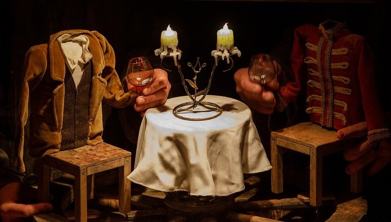 В игровом пространстве спектакля сочетаются куклы, люди, предметы. Главный герой — пегий мерин, марионетка с тонкой пластикой и огромными человеческими глазами оказывается единственным живым существом среди гротескных образов — конюха, гусарского офицера, его любовницы. Люди в этом спектакле обезличены, в их мире главное счастье — назвать как можно больше вещей «своими».