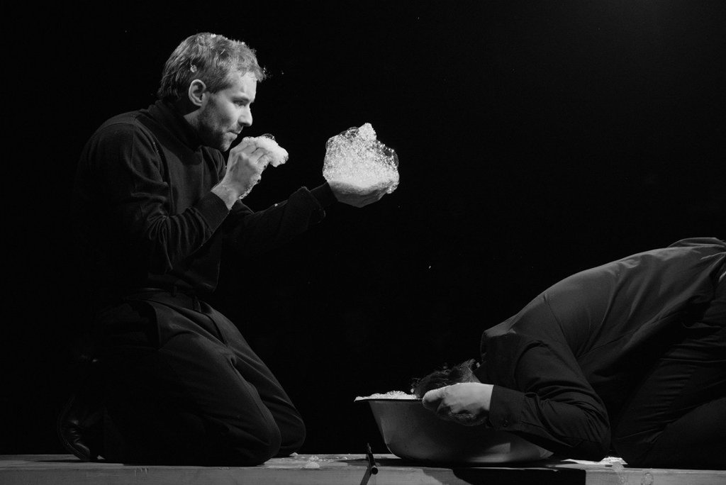 <p>В постановке художественного руководителя Большого театра кукол Руслана Кудашова Высоцкий предстает перед зрителем во всех своих ипостасях: режиссер изобразил поэта, музыканта и актёра, которые, соединившись, дарят публике яркое и пронзительное представление, уносящее в 80-е. Из театральной сцены Кудашев сделал боксерский ринг, окруженный зрительными рядами: на этом ринге сражаются актеры, а историю жизни главного героя рассказывают мужской и женский хор.</p>