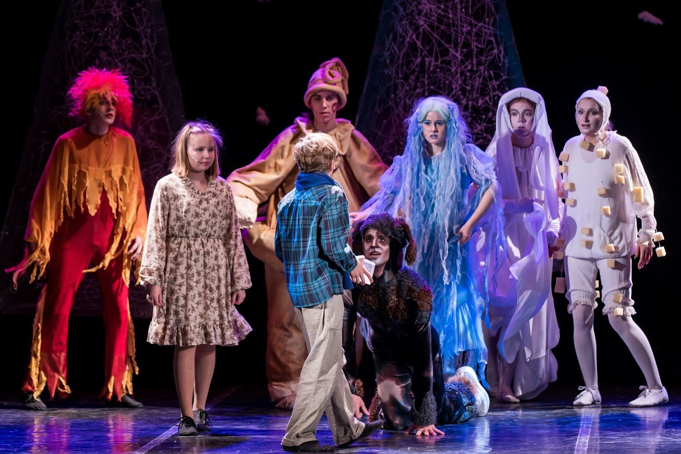 На ваших глазах как по волшебству оживают молоко, хлеб, огонь, сахар, вода! Вместе с главными героями Тильтилем и Митиль дети в зрительном зале отправляются на поиски Синей птицы! Преодолев множество преград, они находят птицу счастья дома, рядом с мамой и папой.