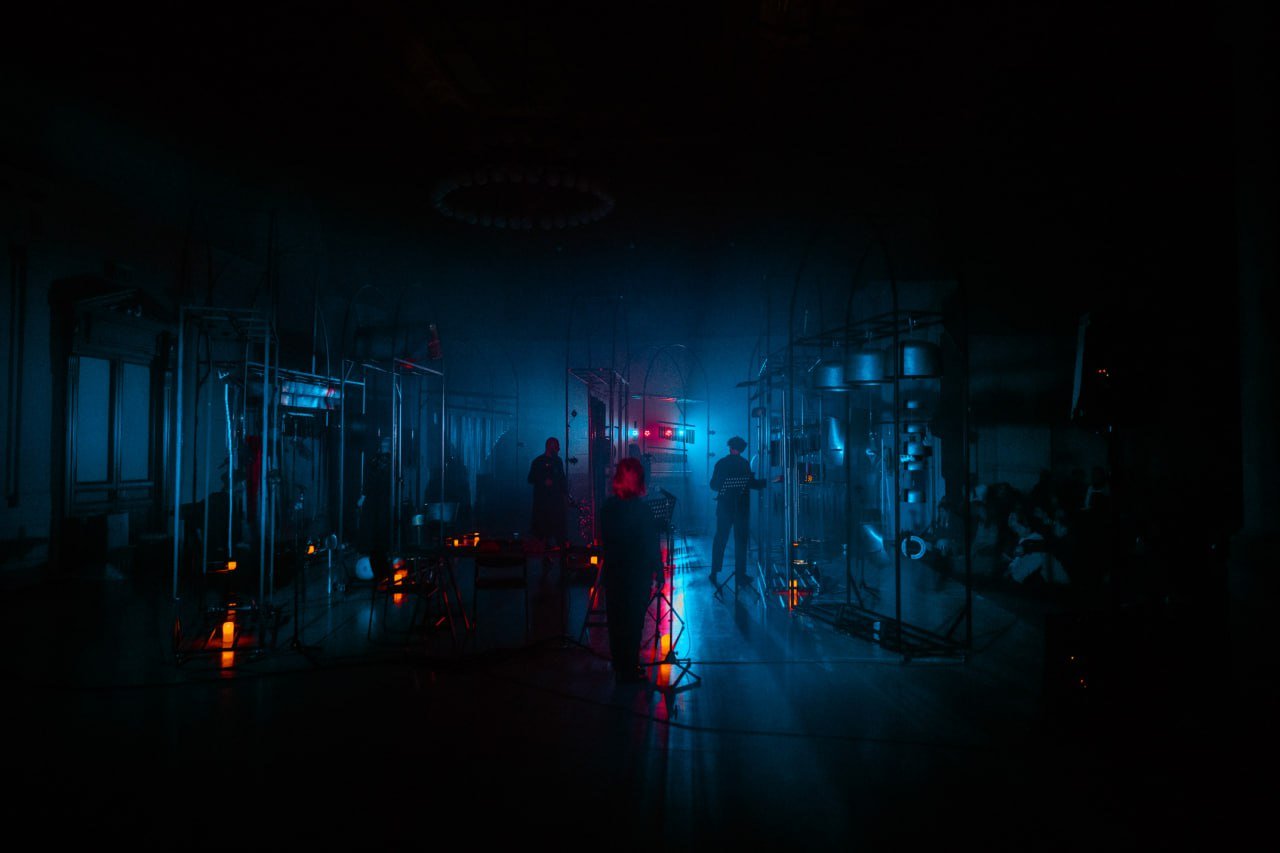 «Бикапо небесного леса» — это концерт-ритуал с использованием звуковых кинетических скульптур, конструкций и объектов Германа Виноградова.