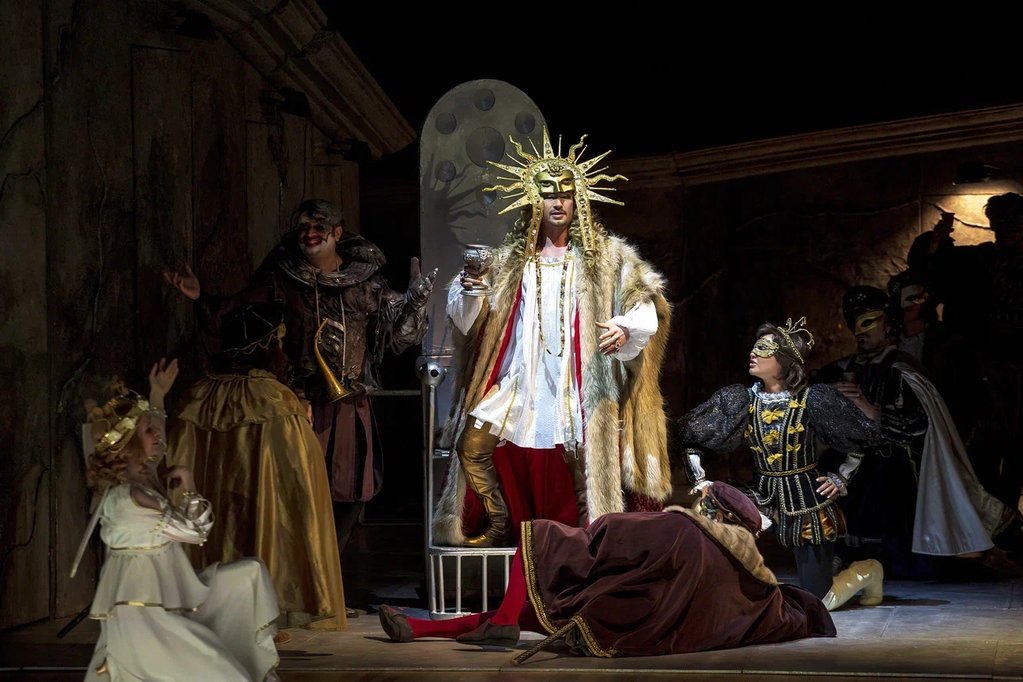 Роскошные, изысканные костюмы словно погружают зрителя в историческую атмосферу. Кажется, что персонажи спектакля, облачённые в дорогие ткани и прихотливые маски, словно сошли с полотен старых мастеров. Спектакль очень цельный, с продуманными до мелочей деталями, да и просто красивый. А актёрская игра и превосходное музыкальное исполнение отвечают замыслу самого композитора — создателя жанра музыкальной драмы.