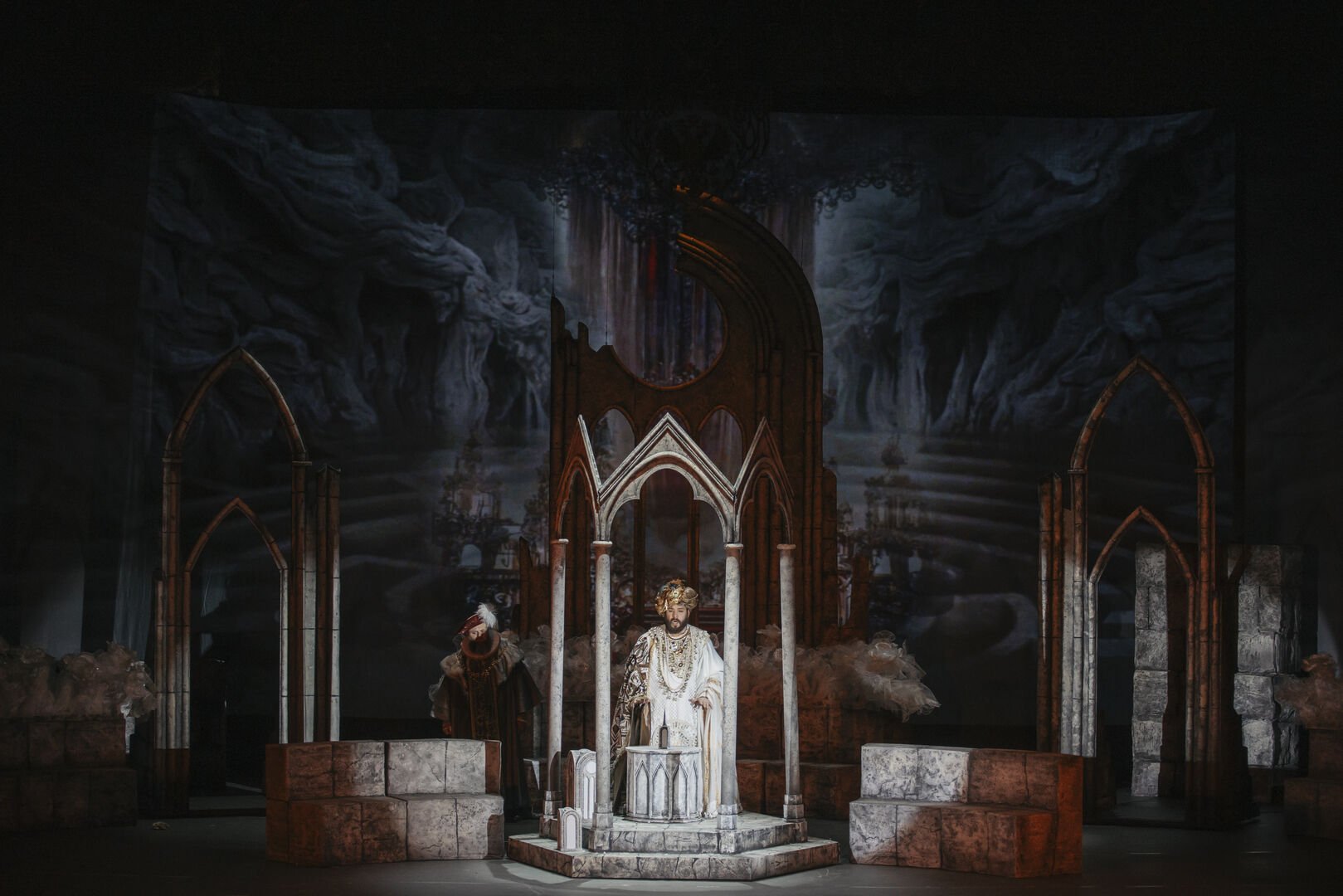 Во втором акте зрители увидят «Иоланту» Петра Чайковского, последнее оперное произведение великого композитора. Режиссёр, продолжая смену сезонов, пронесёт историю героев сквозь зиму и весну. Действие развернётся на обломках старого храма, в руинах которого слепо блуждает Иоланта. С течением времени дороги, по которым проходит главная героиня, заметаются снегом, и вместо выхода Иоланта встречает сугробы, преграждающие путь к счастью. Но любовь, подобно бурному ручью, сметёт все препятствия. Сама вселенная поддержит это стремление, и наступит весна на всей земле и в сердцах героев. В атмосфере происходящего на сцене будет задействован потолок над зрительным залом, который отразит перемены мира, гармонично сочетаясь с внутренним состоянием героев. Цифровое пространство сплетётся с действием, рождая новое видение оперы. В момент прозрения Иоланты засияет солнце, символизирующее чудо, свершившееся с героиней.