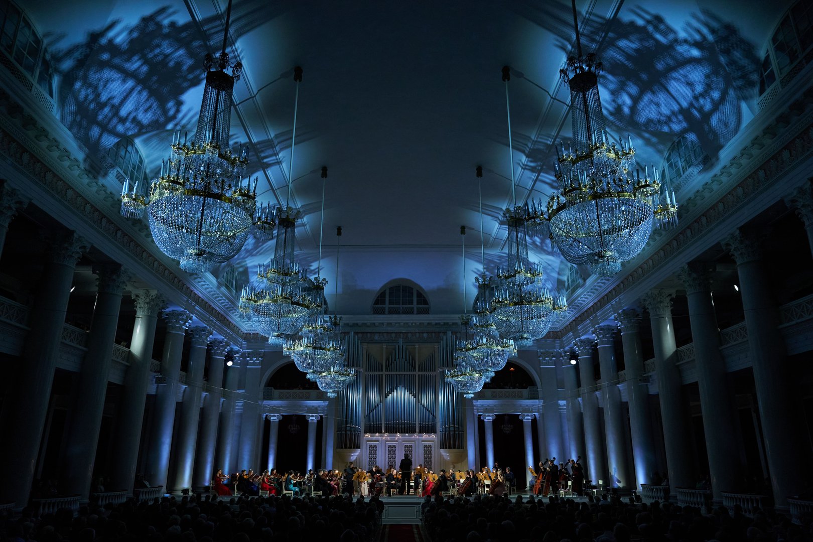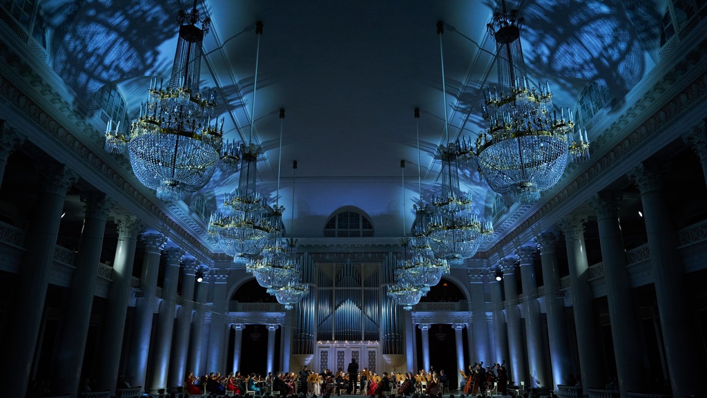 На сцене — Singolo Orchestra и лауреаты международных конкурсов дирижёр Антон Гаккель и виолончелист Дмитрий Ганенко.