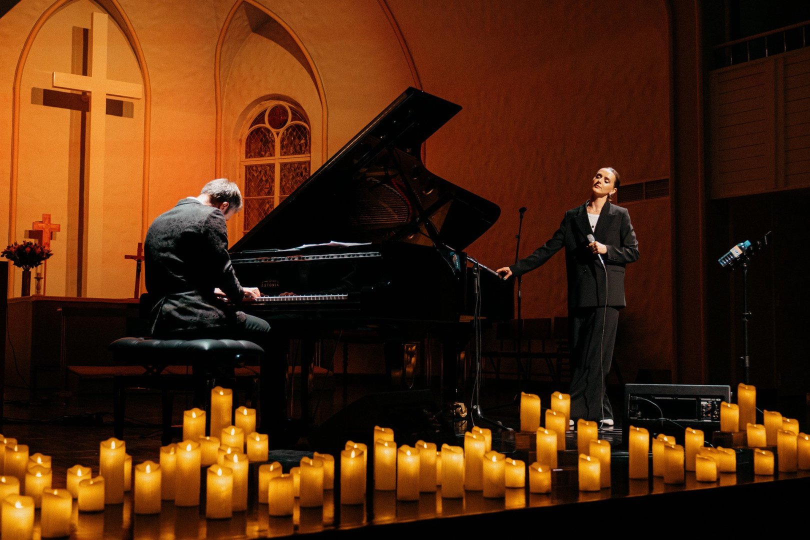 Старинный собор с его большим залом, освещенным только мягким светом сотен свечей. Глубина и чувственность звучания рояля и голоса. Только представьте трогательность Love In The Dark в невероятной акустике главного зала церкви.