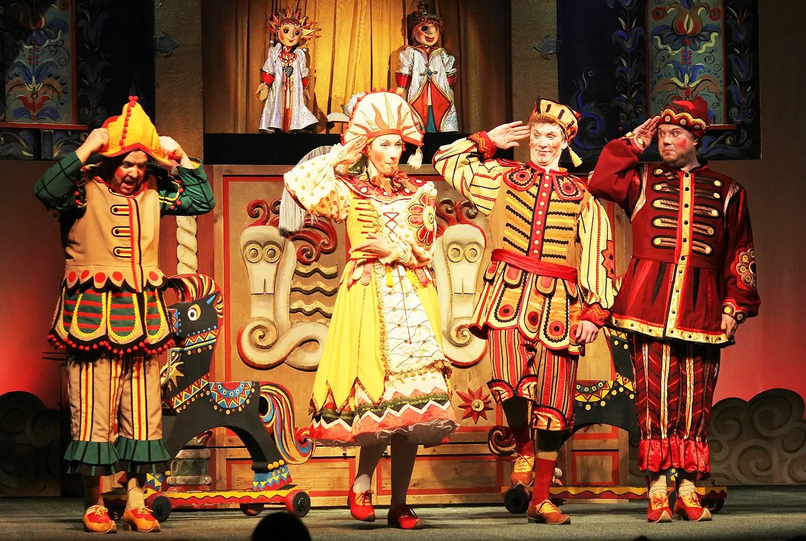Спектакль по знаменитой сказке Петра Ершова поставлен в жанре балаганного представления. Весёлые скоморохи расскажут и покажут историю о захватывающих приключениях и превращениях, о верной дружбе и злобной зависти, о глупом жадном Царе и красавице Царь-девице...