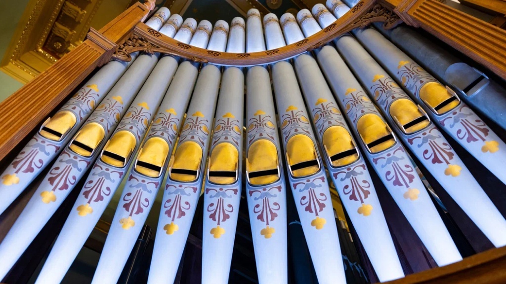 Торжественное посвящение «короля инструментов» — органа — названо в музыкальном мире инаугурацией по аналогии с торжественной процедурой вступления в должность главы государства. Орган в Концертном зале поистине королевских кровей — изготовленный в 1877 году английской фирмой «Бриндли & Фостер», он занял своё место в петербургской Англиканской церкви, и современники нарекли его звучание «сверкающе-огненным». После Октябрьской революции службы прекратились, и пока за витражными окнами зала сменялись эпохи XX века, инструмент терпеливо ждал своего второго рождения.