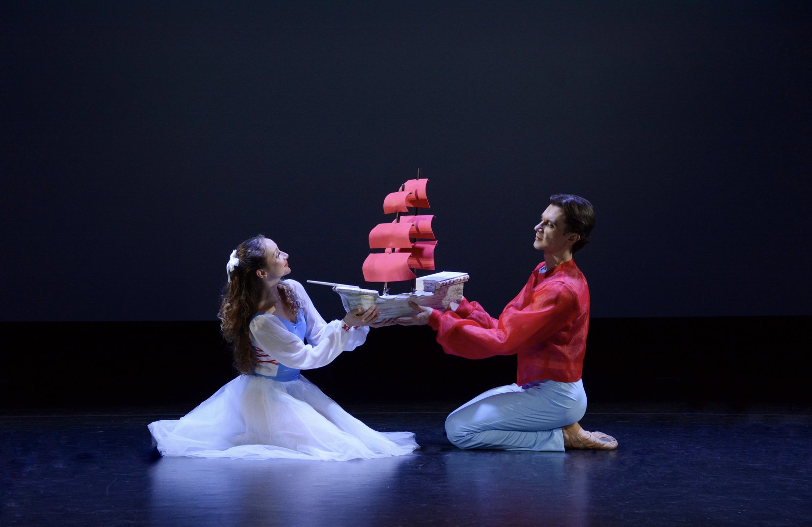 В основе балета «Алые паруса» лежит знаменитая повесть Александра Грина. Авторы нового спектакля переосмысливают классический сюжет, используя выразительные возможности музыки и танца. Отвечая на запросы современного балетного искусства и зрительского интереса к вечным темам, создатели решили применить широкий спектр хореографических направлений.