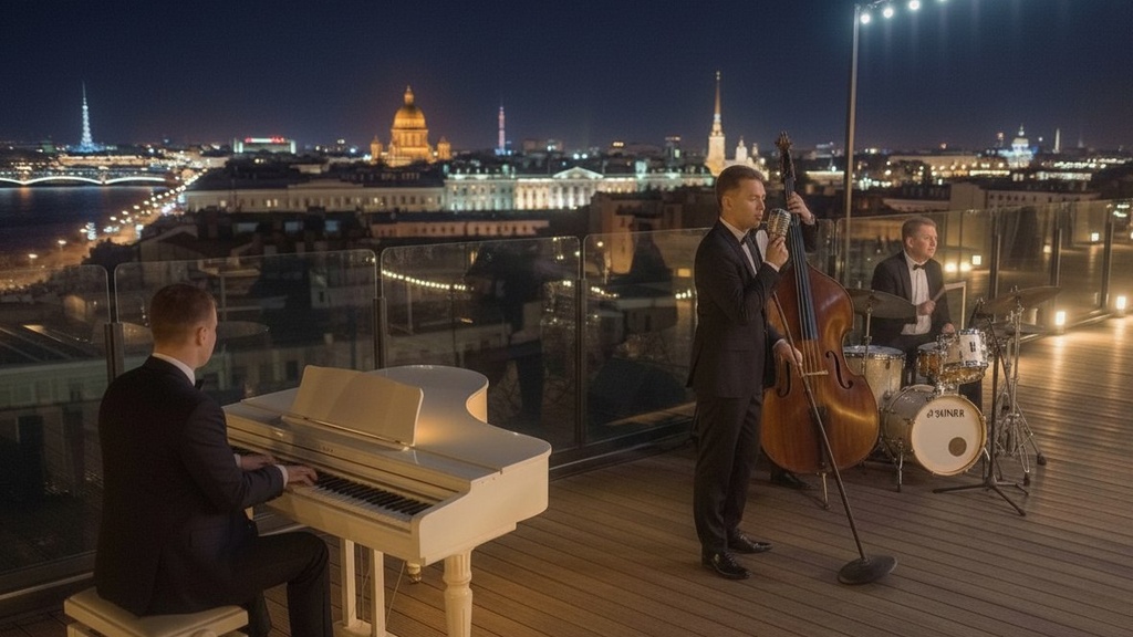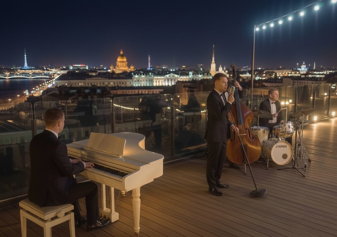 Мы приглашаем вас насладиться романтическим джазом на террасе крыши. В этот вечер для вас выступит Jazz Hooligans — бэнд, который умеет создавать настроение с первых нот. В их исполнении прозвучат легендарные хиты: L. O. V. E., Fly Me to the Moon, Cheek to Cheek и другие композиции, наполненные лёгкостью, теплом и особым шармом.