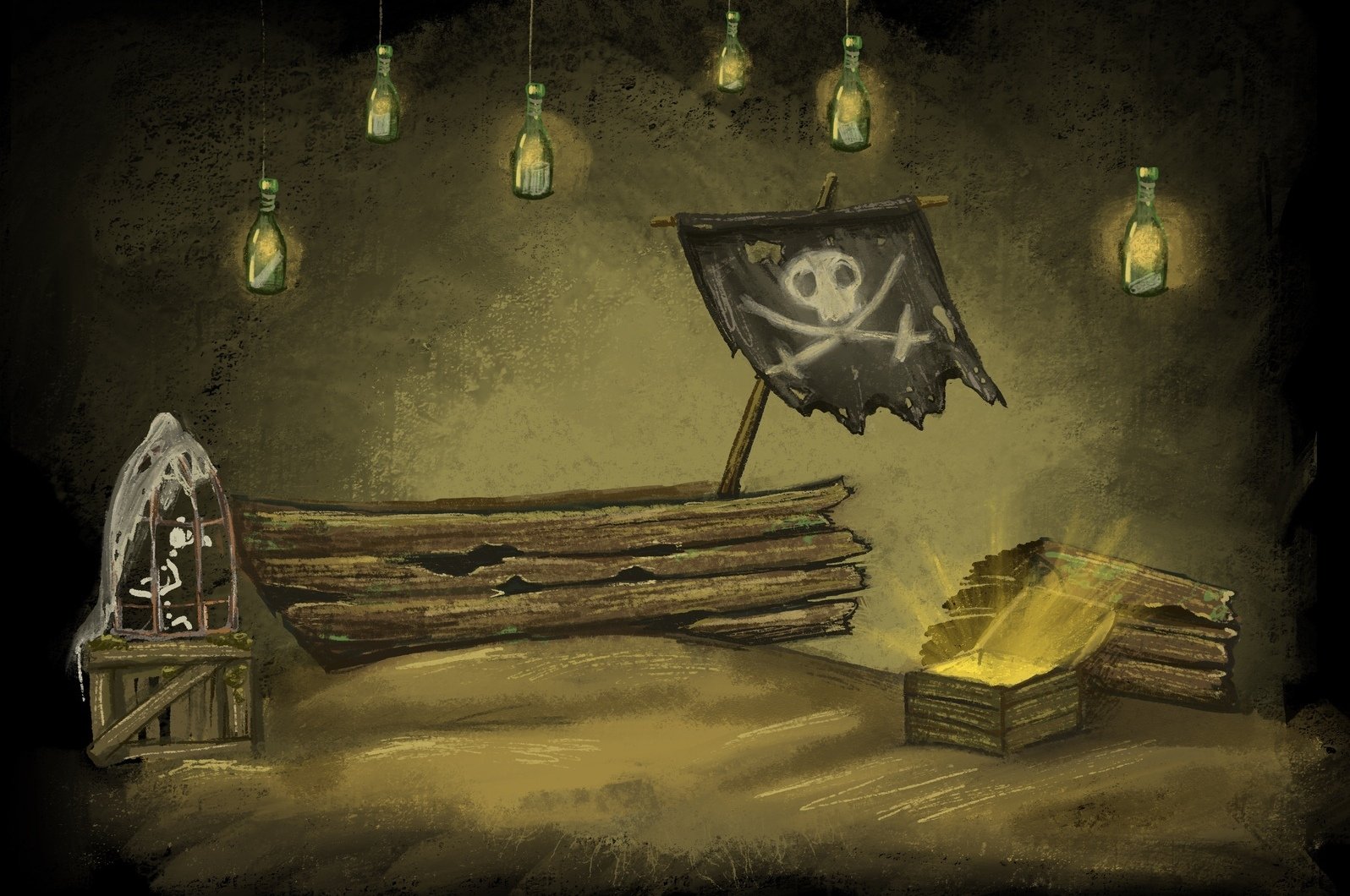 Режиссёрское решение поражает воображение: мир пиратов оживает в уникальной кукольной интерпретации. Три вида кукол сменяют друг друга, стирая грань между реальностью и вымыслом. Сцена предстает как выброшенный штормом берег: песок, камни, коряги, обломки кораблей. В центре — разбитая лодка, которая становится то островом, то кораблём, то убежищем. Трёхметровая кукла-пират — словно материализовавшаяся тень прошлого. Этот мир — не фон, а соучастник. Он дышит, меняется, напоминает: за каждым обломком — история, за каждой пробоиной — путь, который не пройти назад.