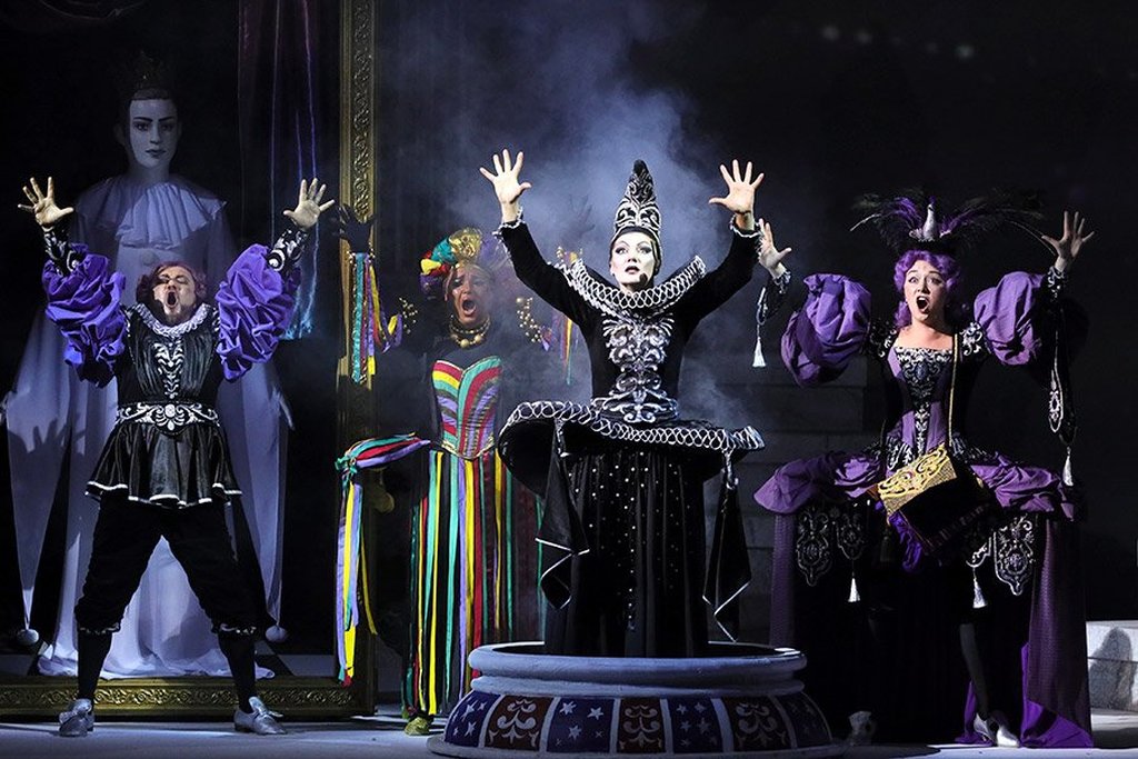 Панталон, приближённый Короля, призывает на помощь Труффальдино, которому Король поручает организовать при дворе увеселительное действо. Выясняется, что судьбы Принца и честолюбивого первого министра Леандра разыгрываются в карты. Маг Челий, который стремится вернуть мир к добру и гармонии, играет с Фатой Морганой, амбициозной и ревнивой колдуньей, желающей смерти Принца и покровительствующей Леандру и племяннице Короля интриганке Клариче. Клариче мечтает унаследовать трон и сделать Леандра своим супругом. Но для этого надо расправиться с Принцем, и Клариче предъявляет Леандру ультиматум: «Принцу нужен опий или пуля». Этот разговор подслушивает арапка Смеральдина и сообщает Клариче и Леандру о том, что на их стороне будет сама Фата Моргана.