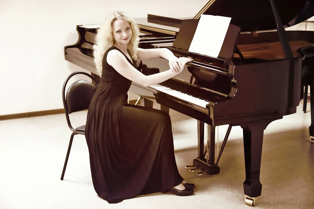 На сцене — Екатерина Андрианова (Шайназарова) — пианист, концертмейстер, преподаватель.