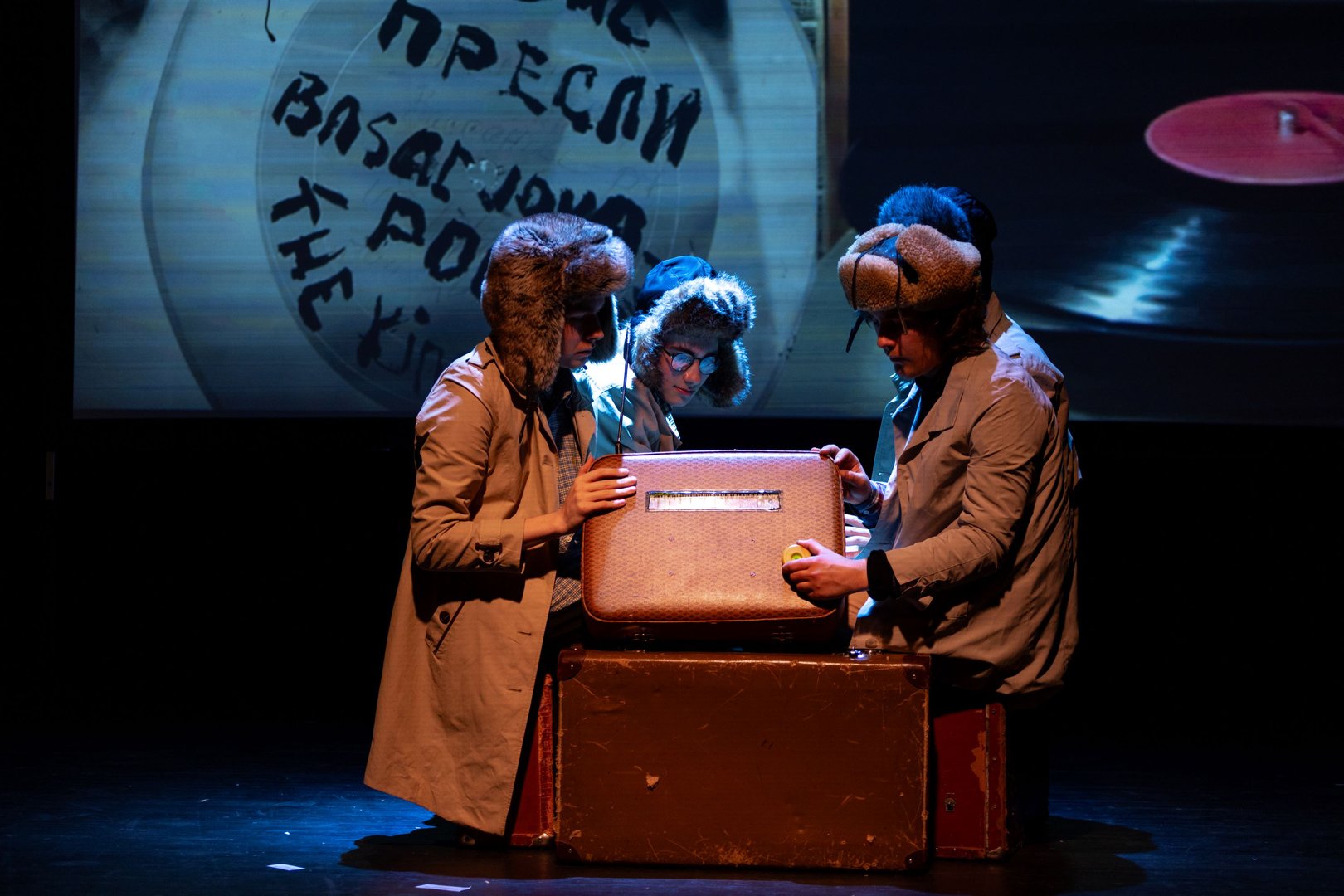 Особую роль в повествовании играют старые чемоданы — реальные свидетели событий прошлого. Активные участники сценического действия, они всё время превращаются во что-то новое: фронтовая машина, радио, тальяночка, полуторка, светящиеся огнями дома ночного города. Чемоданы — это и символ пути, дороги, движения вперёд. Символ ожидания перемен.