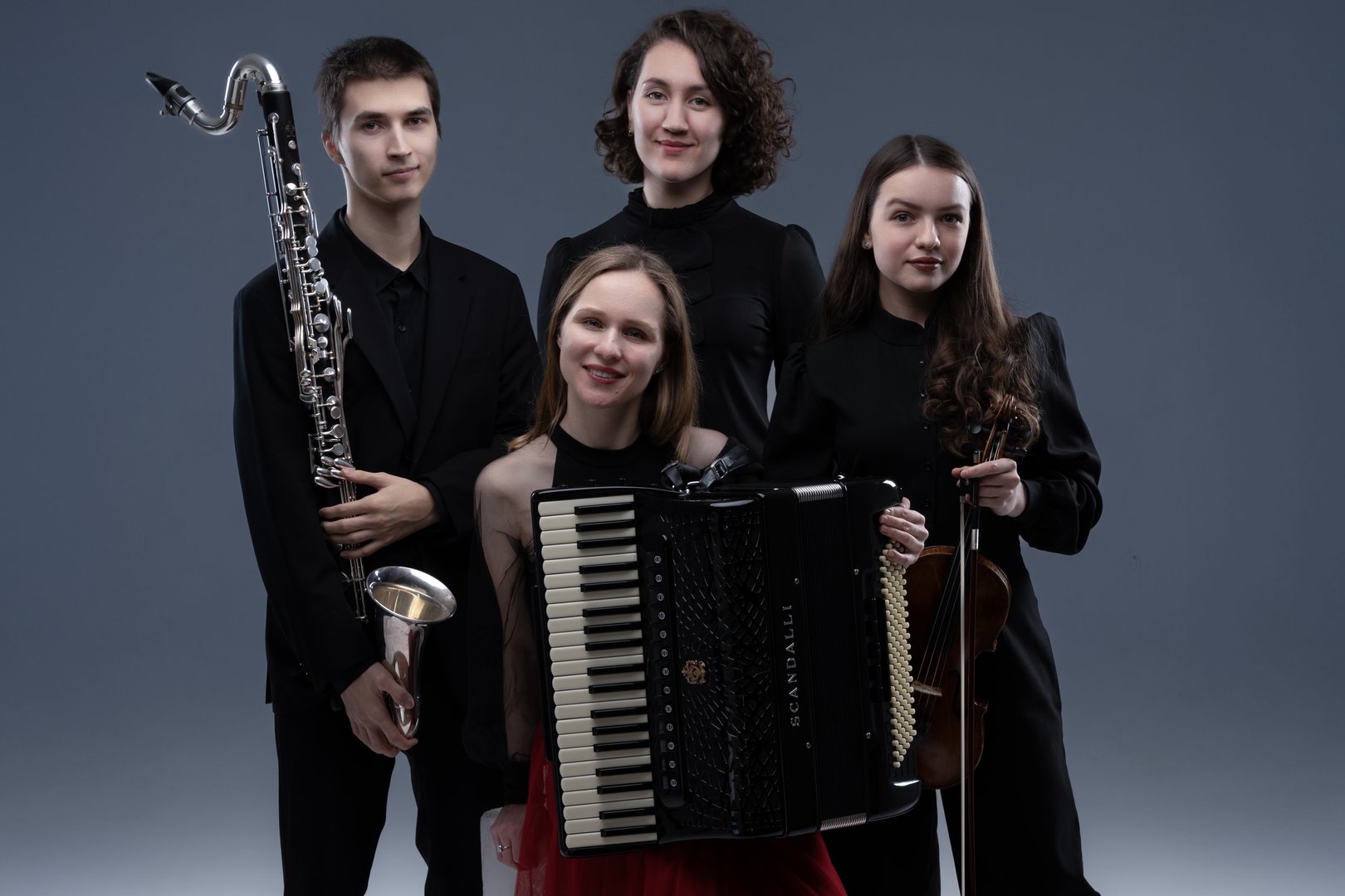 Концерт для вас исполнит Ансамбль Quattro in Unico: Анна Фирсова (скрипка), Дарья Маркина (аккордеон), Михаил Щетенко (бас-кларнет) и Юлия Оборина (фортепиано). Также в концерте примет участие лауреат Всероссийских и Международных конкурсов Данила Жадаев (баян).