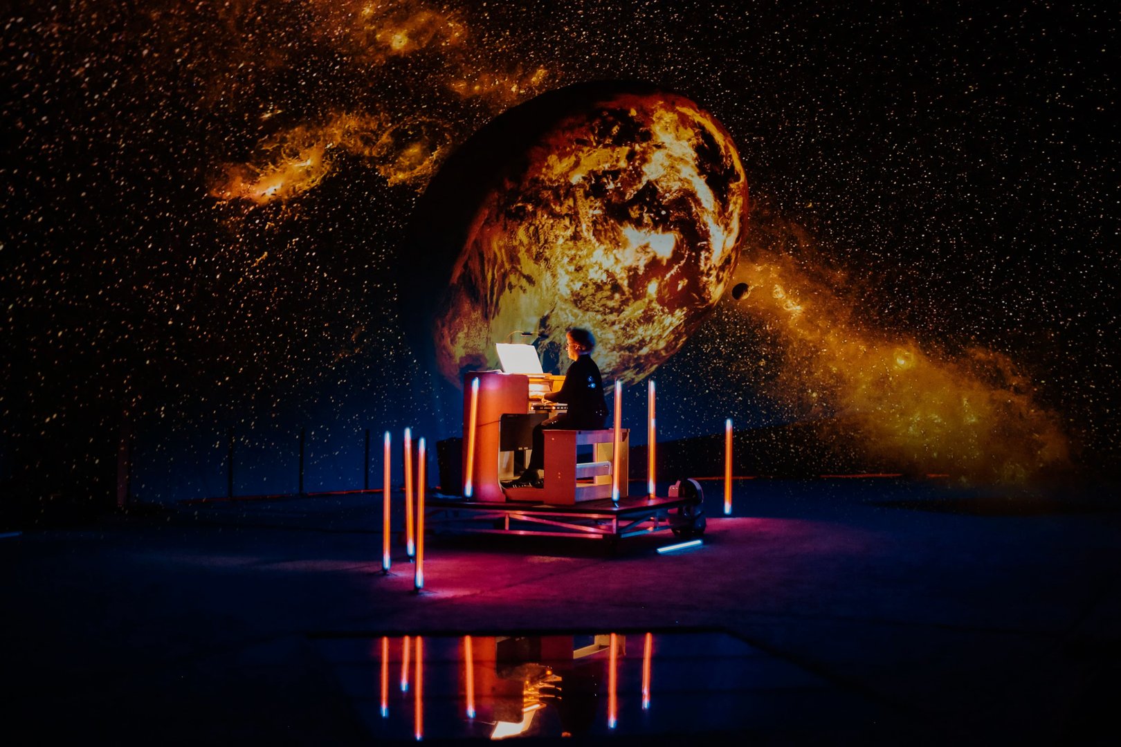 Когда люди слышат орган впервые, то находят его звучание «космическим». Amadeus Concerts совместили эту ассоциацию с атмосферой Планетария и получили удивительный концерт, который запускает зрителей прямо в открытый космос.