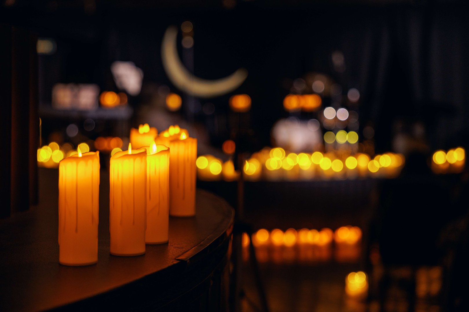 Представьте: вы в уютном полумраке окружены мерцанием сотен свечей, а над вами раскрывается грандиозный 25-метровый звёздный купол. Северное сияние зальёт зал фантастическими красками, звёзды будут падать и взлетать, планеты и галактики пронесутся в безмолвном космическом танце.