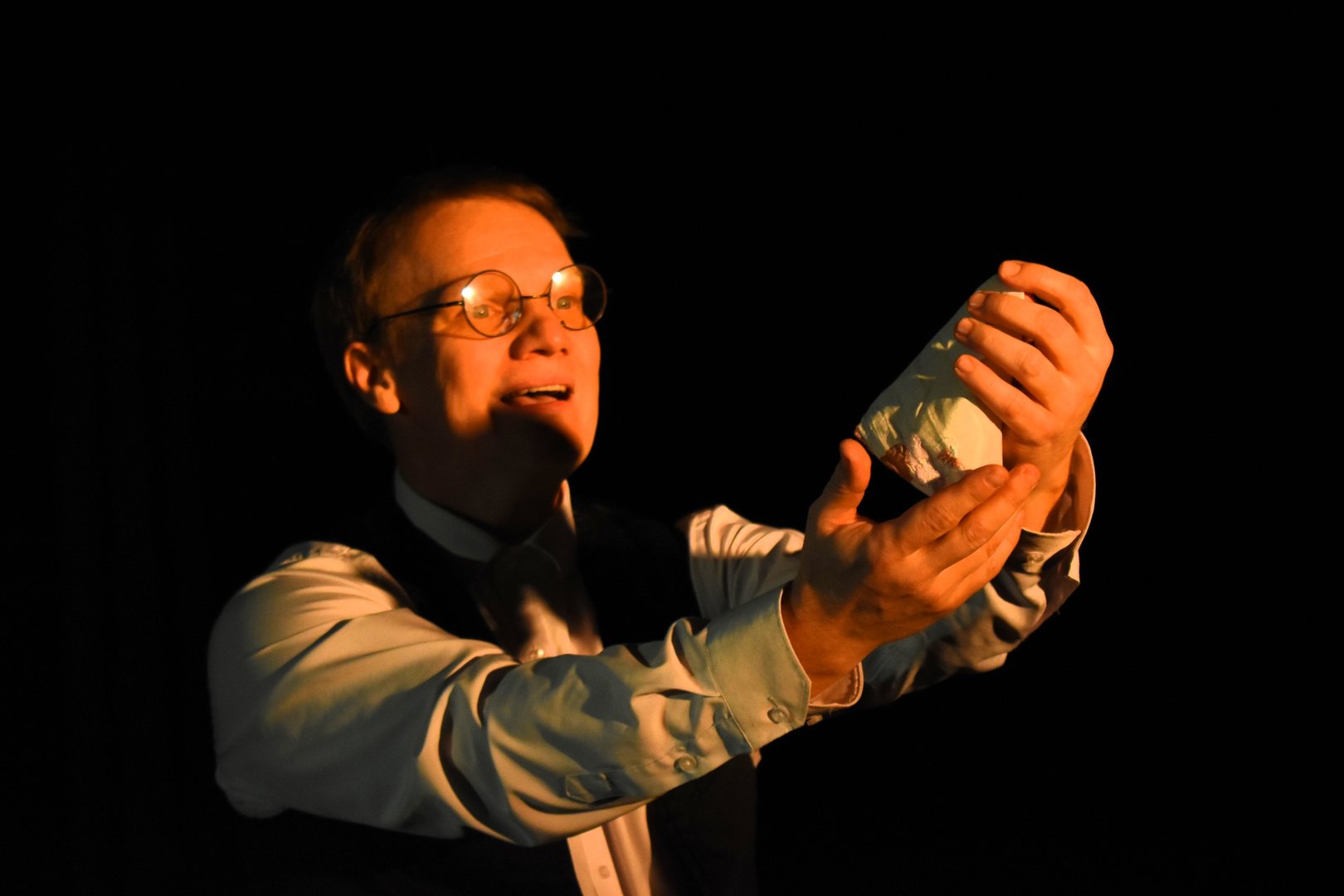 Моноспектакль поставлен в жанре эклектической фантазии (во всяком случае, так придумалось автору), в котором на одной сцене соединяются проза Гоголя и поэзия Маяковского, атмосфера XIX и начала XX веков, мощь и напор лирического героя Маяковского и трагедия маленького человека Поприщина.