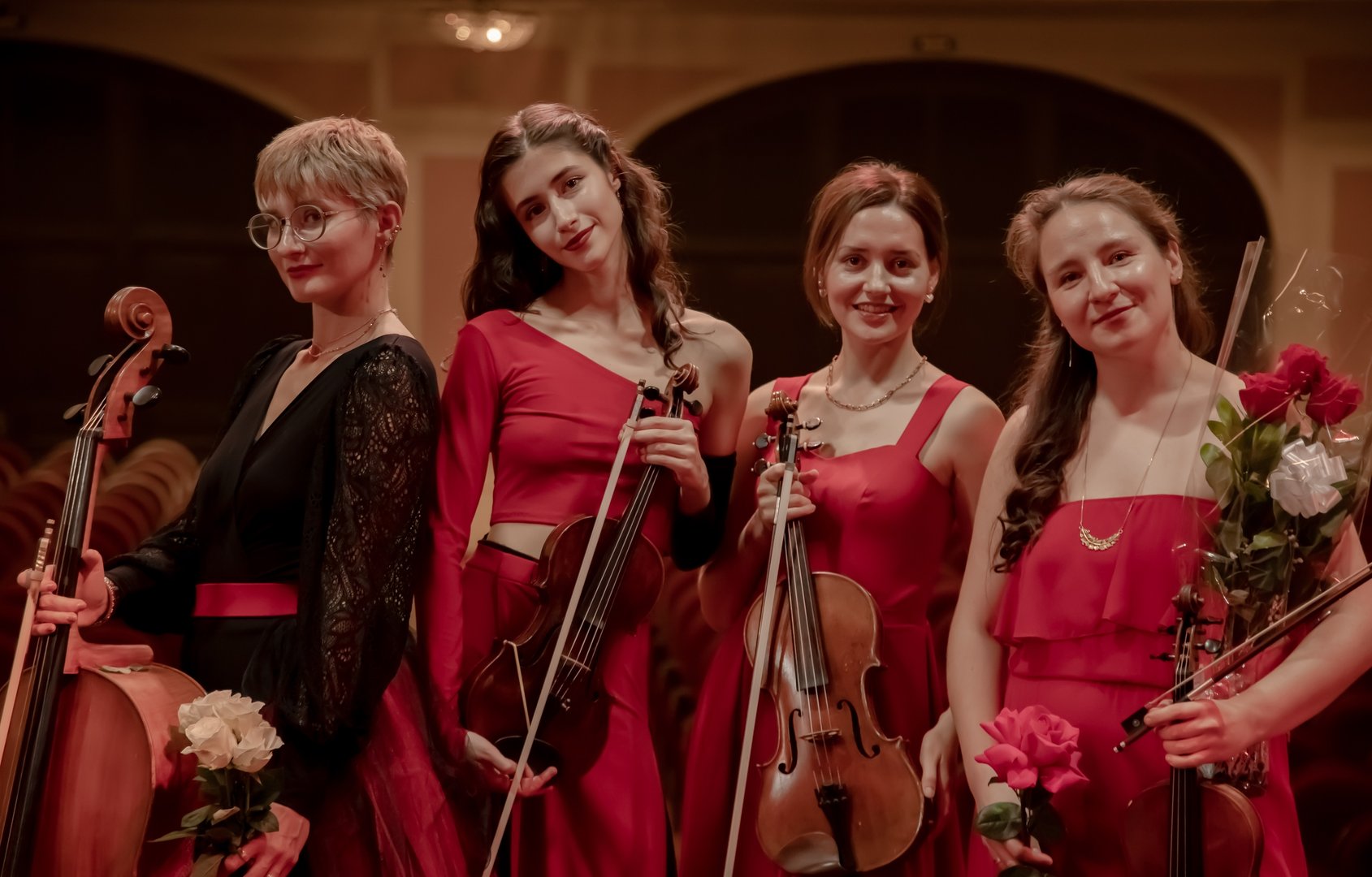 Исполнители: Елена Козлова-Гатовская (скрипка), Наталия Денисова (скрипка), Мария Цеван (альт), Елизавета Усович (виолончель).