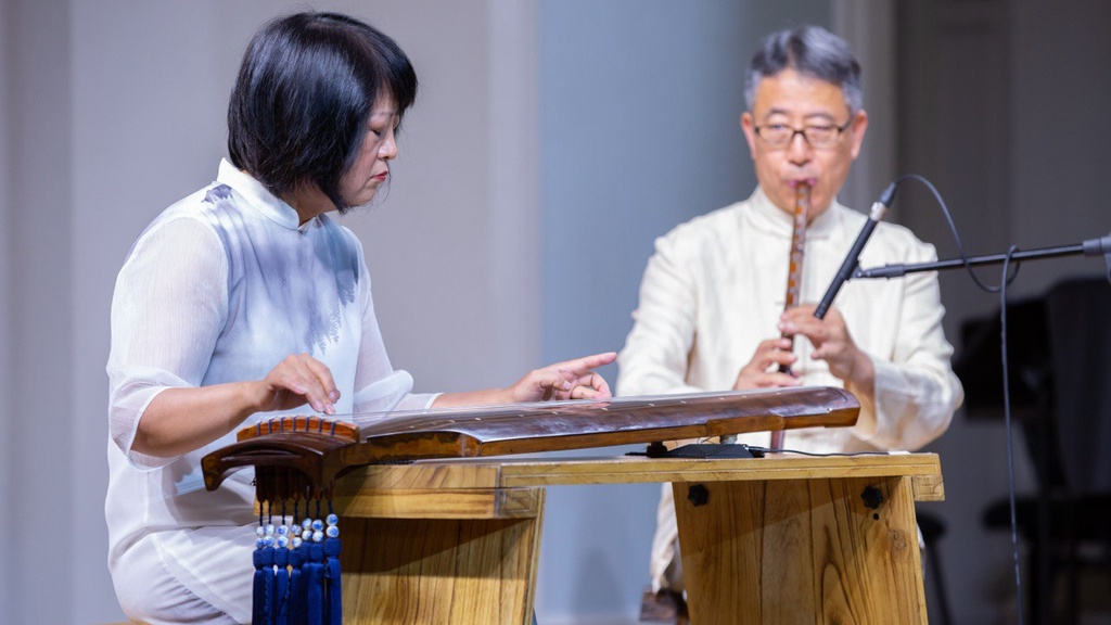 Профессоры Тяньцзиньской консерватории, выдающиеся исполнители на традиционных китайских инструментах, исследователи и преподаватели китайской музыки г-жа Ли Фэнъюнь и г-н Ван Цзяньсинь познакомят слушателей с классическим репертуаром цитры гуцинь, бамбуковых флейт сяо и дицзы. Доктор искусствоведения Ван Цзяньсинь расскажет об инструментах и их истории, о музыке и поэзии в культуре Китая.